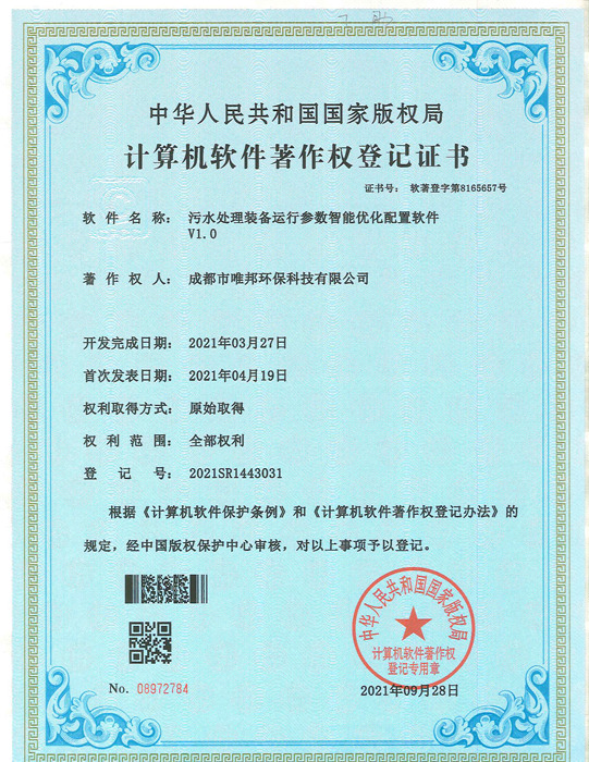 低耗能農村污水處理設備-證書
